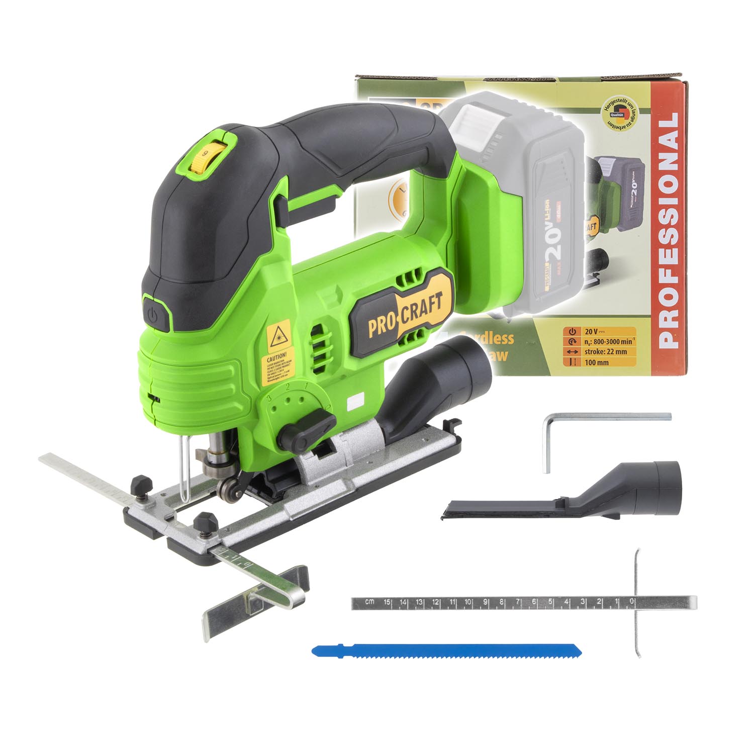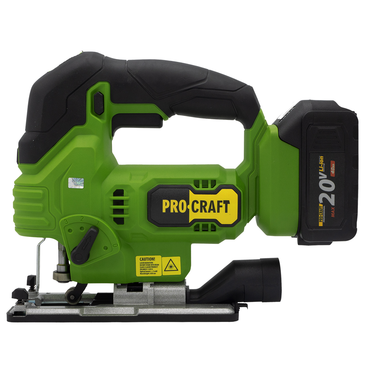 Akumulátorová priamočiara píla Procraft ST24 (bez akumulátora a nabíjačky) Vybavená laserom a svetlom, nastavením uhla rezu, reguláciou rýchlosti, rýchloupínačom T-LOC