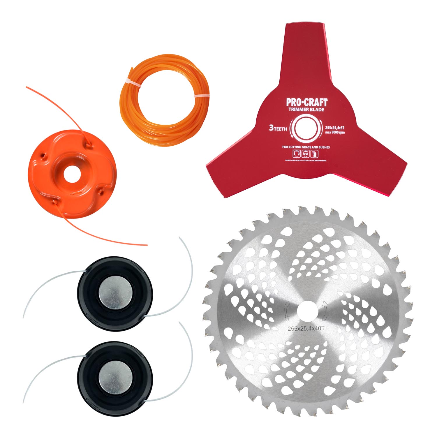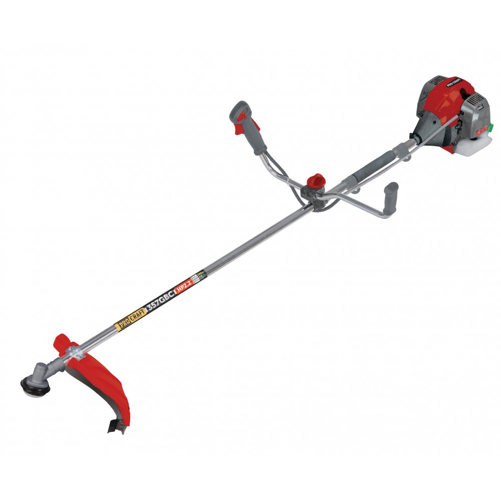 Benzínový krovinorez Procraft 357GBC-EL s elektrickým a manuálnym štartérom pre jednoduché spustenie. Výkon 1,25 kW (42,7 cm³), šírka záberu 415 mm, oceľový hriadeľ 150 cm. Súčasťou balenia sú nože, strunová hlava,maska, popruh a príslušenstvo.