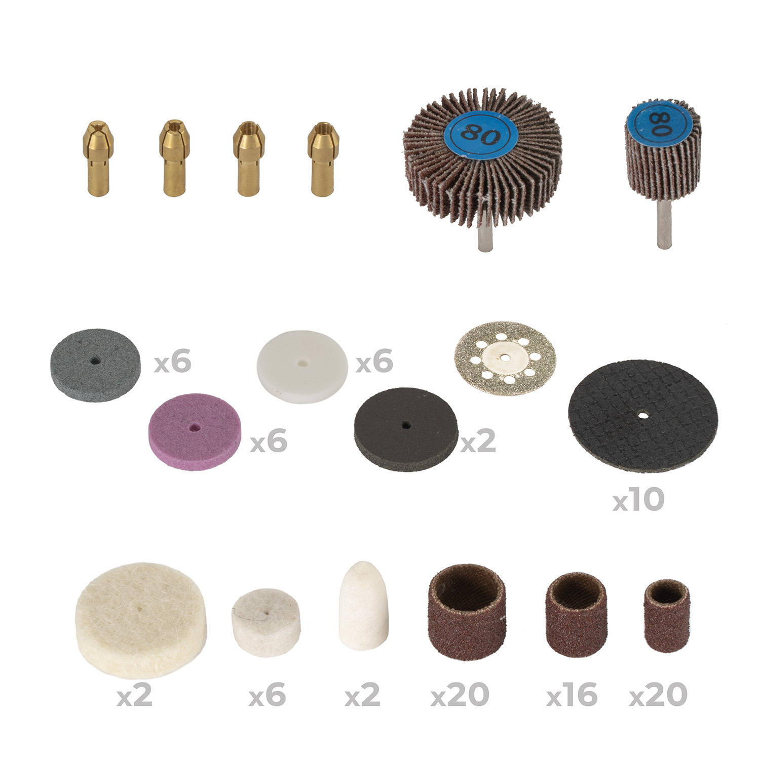 - ✅ 418 nadstavcov GK-418 – brúsenie, rezanie, leštenie, vŕtanie pre kov, drevo, plast, sklo aj keramiku