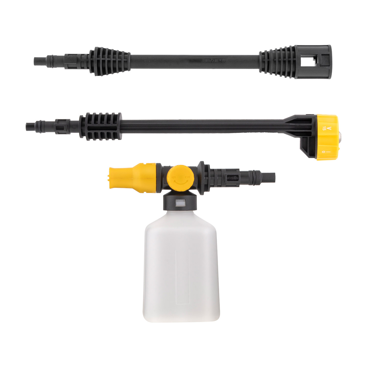 Tryska 6 v 1 a peniaca nádoba Multifunkčná tryska s 6 nastaveniami prúdu pokryje rôzne typy čistenia – od jemného dažďového prúdu až po koncentrovaný lúč pre tvrdé nečistoty. Navyše, peniaca nádoba s reguláciou tlaku umožňuje aplikáciu čistiaceho prostriedku priamo na umývaný povrch – rovnomerná pena pre efektívnejší výsledok.