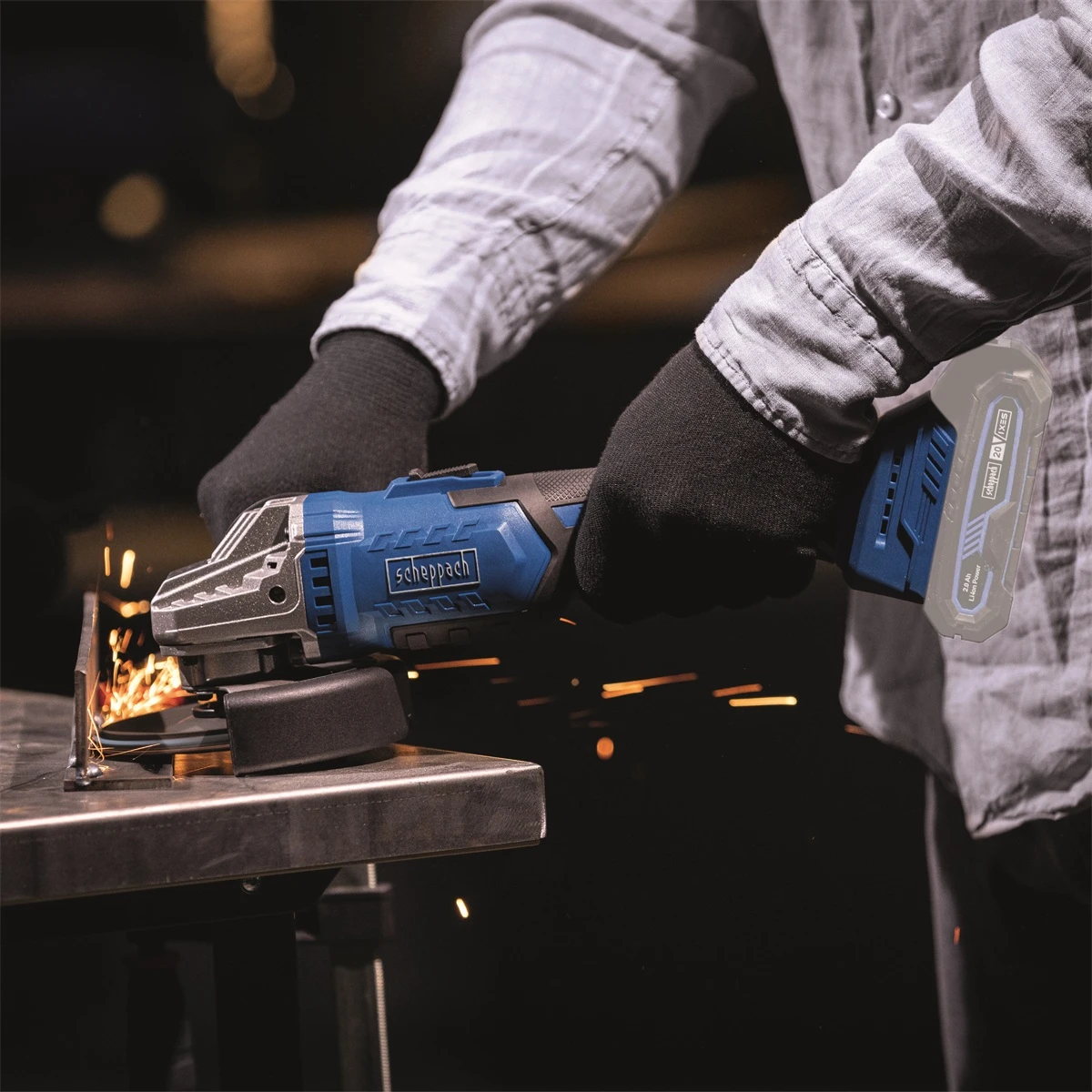 Bruska je vybavena moderním uhlíkovým motorem zajišťující plynulý chod. Prodloužená životnost brusky je zajištěna integrovaným systémem Softstart (pomalý rozběh) a ochranou proti přetížení. Stroj je plně kompatibilní se všemi akumulátory a nabíječkami řady Scheppach IXES 20V, které nabízí maximální flexibilitu a pohodlí bez kabelů.