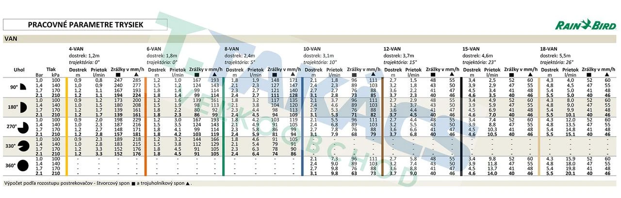 Tryska VAN-6, dostrek 1,8m, nast.uhol 0-330°