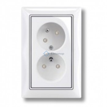 Zásuvka 5513B-C0235794 basic55 biela 2násobná s clonkami, pootočená (prístroj+kryt)